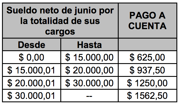 Se trata de un pago remunerativo por persona pagadero en el mes de junio 2018, en carácter de anticipo, y a cuenta del aumento que se acuerde conforme al cuadro que se expone a continuación:
